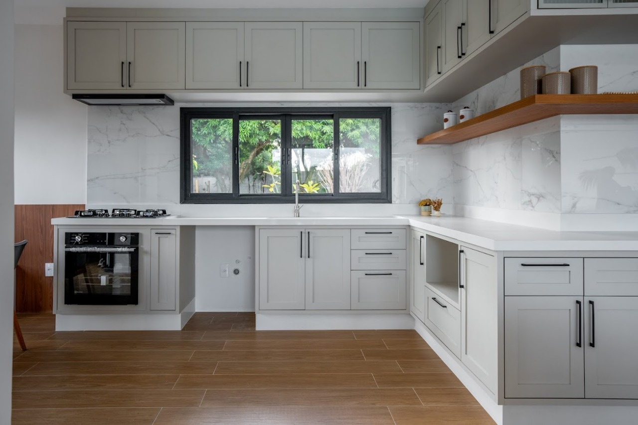A cozinha com copa é equipada com armários planejados, forno, cooktop e depurador, tornando o preparo das refeições uma experiência prazerosa. Para momentos de confraternização, o gourmet com churrasqueira, chopeira e cooktop é simplesmente perfeito.