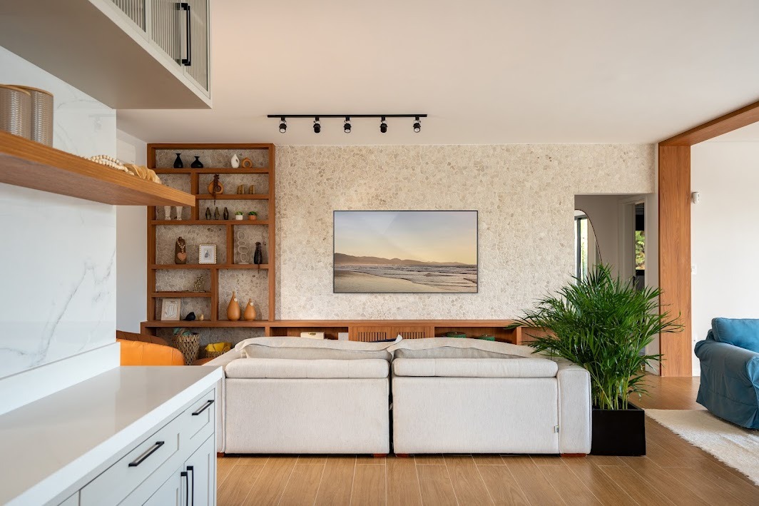 Ao entrar, você será recebido por uma ampla sala integrada, ideal para momentos de convívio com familiares e amigos, em um ambiente que irradia acolhimento e sofisticação.